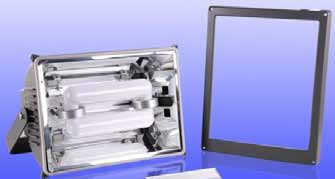 Proiettore industriale Giotto ad induzione elettromagnetica, ideale per l’illuminazione di parcheggi, locali e grandi aree.